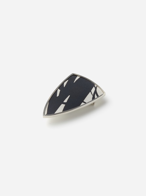 刻々とうつろう光と影の一瞬を写真やスケッチに収め、そこからを丁寧にトレースされた形を切り嵌め象嵌という手法で表現したブローチ。日本伝統の合金のひとつである黒味銅と銀の組み合わせはメリハリのあるモノトーンが目を惹きます。大胆にトリミングされた一部分から風景が広がっていくようです。