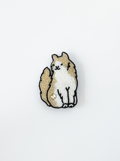 フランスのオートクチュール刺繍リュネビル法を用い、一つ一つ制作したMoko Kobayashiによるブローチ。ラグドールのふわふわした毛並みがビーズで表現されています。