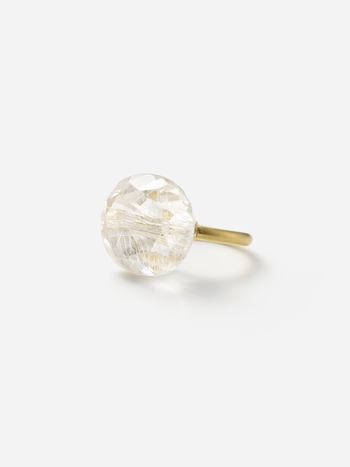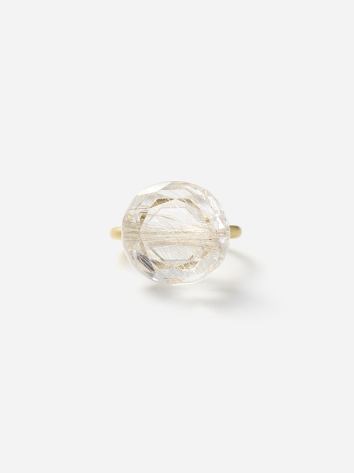 シルバーカラーのルチルが美しく内包された透明度の高いクォーツの魅力を、存分に味わえるラウンドカットのオーセンティックなデザイン。肌馴染みの良いK20YGとの組み合わせは、手元に明るさをもたらします。