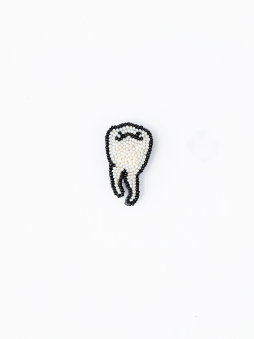 歯根までくっきりと表現されたユニークな「歯」PIN。ジャケットやシャツの襟元などにさりげなくも存在感が光ります。単品でも他のPINと組み合わせてもお楽しみいただけます。