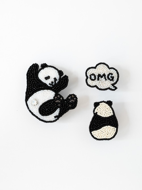 左:パンダ U-SC brooch 右上: OMG PIN 右下:パンダうしろPIN