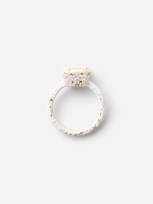 時が静止したかのように白と装飾で包み込まれたリングはまるでアートピースのような存在感です。工芸の緻密な手仕事を、軽やかにモードに表現するMari Kobayashiらしいジュエリーは必見です。