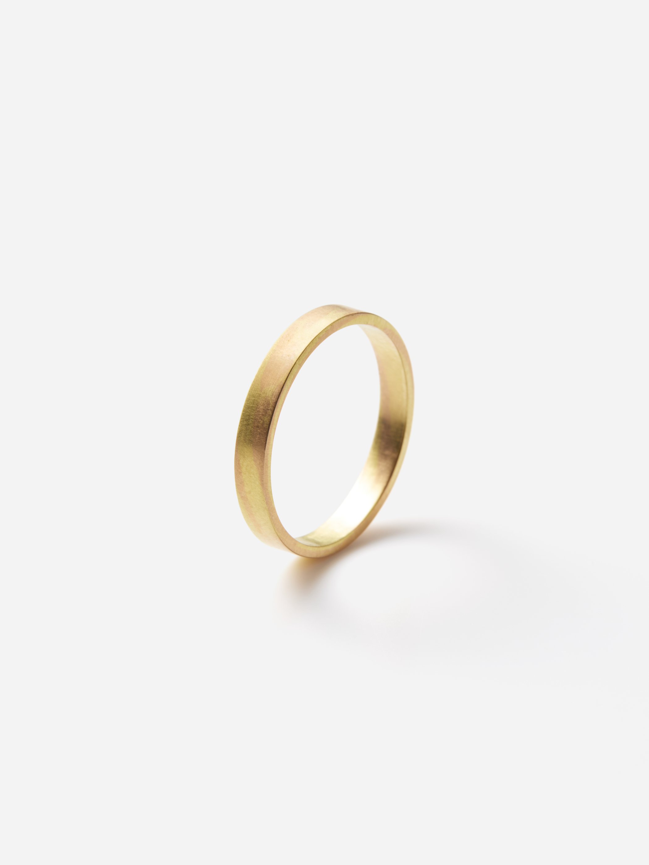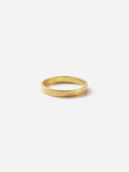 K18のイエローゴールドとピンクゴールドがランダムに混じり合いながら、美しい抽象的なパターンを作り出しています。たおやかなマーブルリングの模様は、一緒になるべく運命を感じる程に美しく調和しており、さりげなく唯一無二の存在感を放ちます。古来より伝わる金工技法を生かしながら、直線的でミニマルなデザインやマットな仕上げがモダンな印象へと導いています。