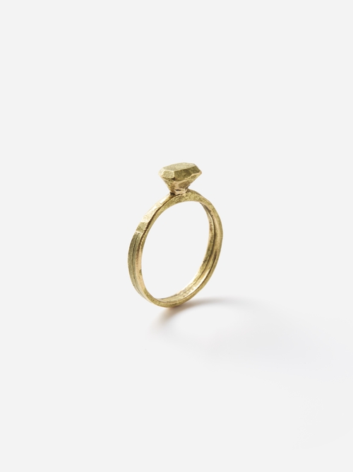 原型となるワックスからソリテールリングの形を削り出し、K18goldで鋳造。彫刻的とも言えるフォルムの美しさとソリッドなゴールドの素材そのものの魅力も堪能できる、ラグジュアリーな一点です。no.7、no.9、no.10、それぞれ異なるフォルムとボリューム感で印象が変わります。