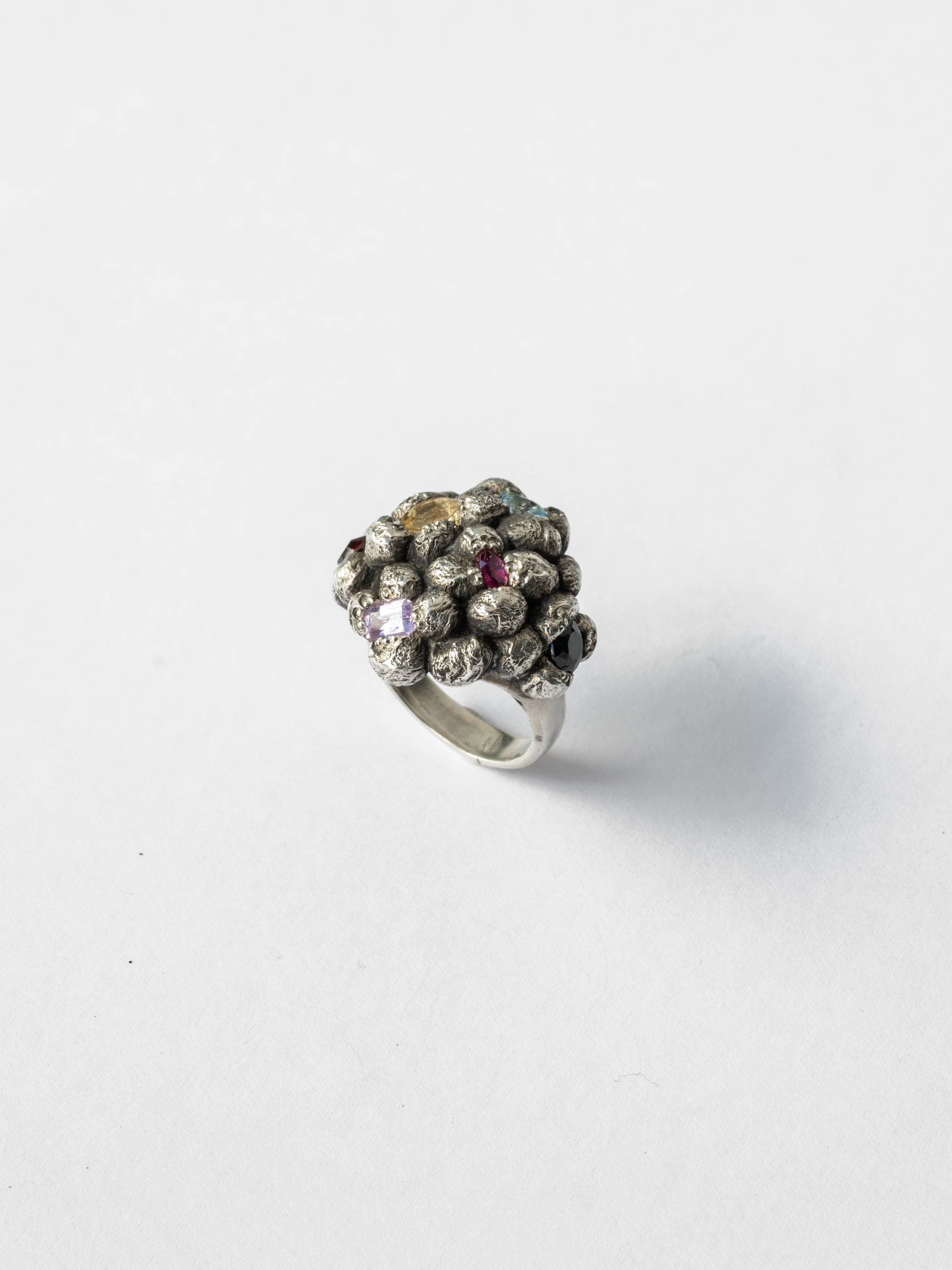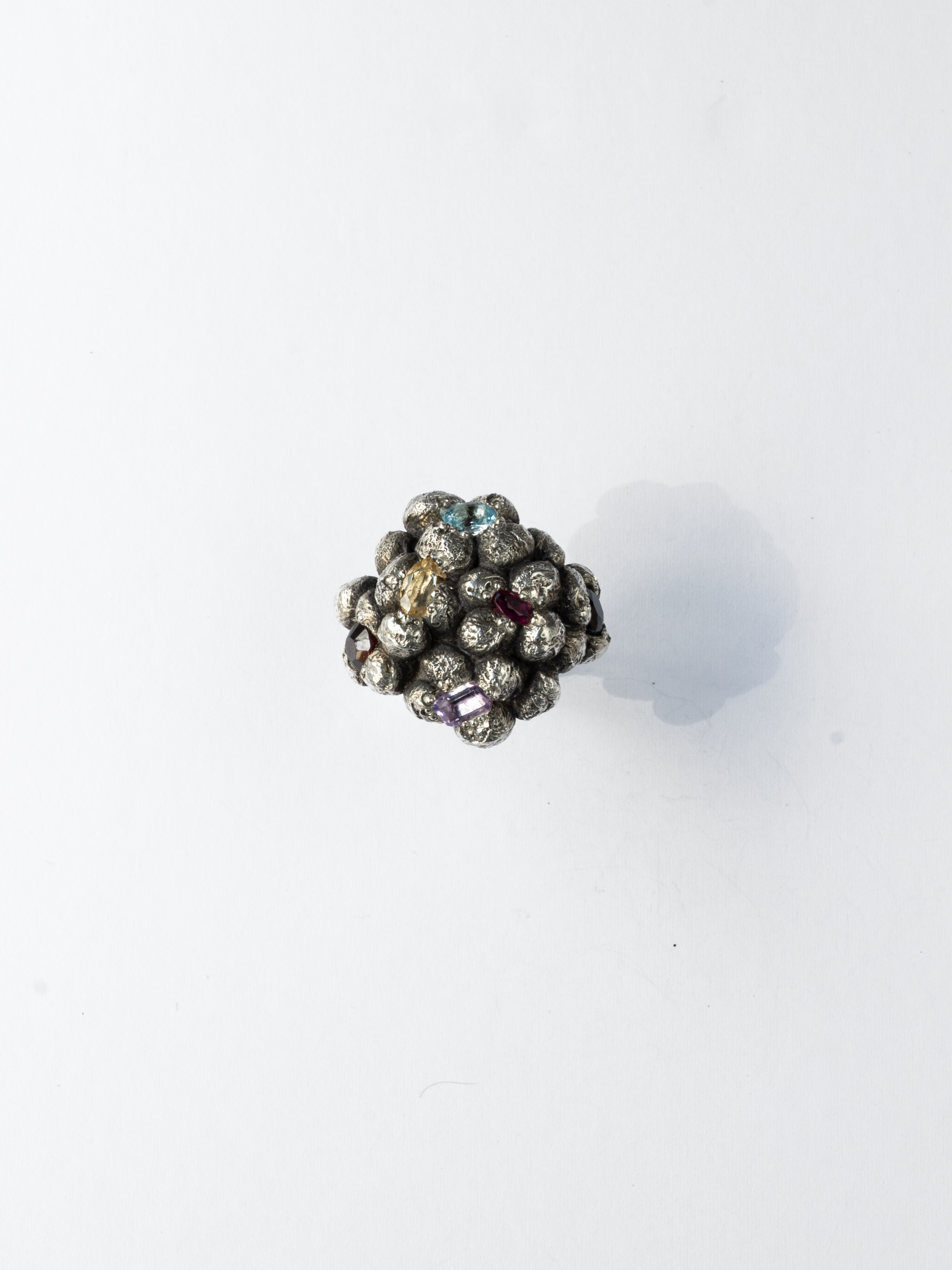 マックス・ウォーカーによるロストワックス鋳造法で作られたリング。ルビー、サファイヤ、アメシスト、ブルートパーズといった、マックスならではの石の組み合わせが素敵な作品。