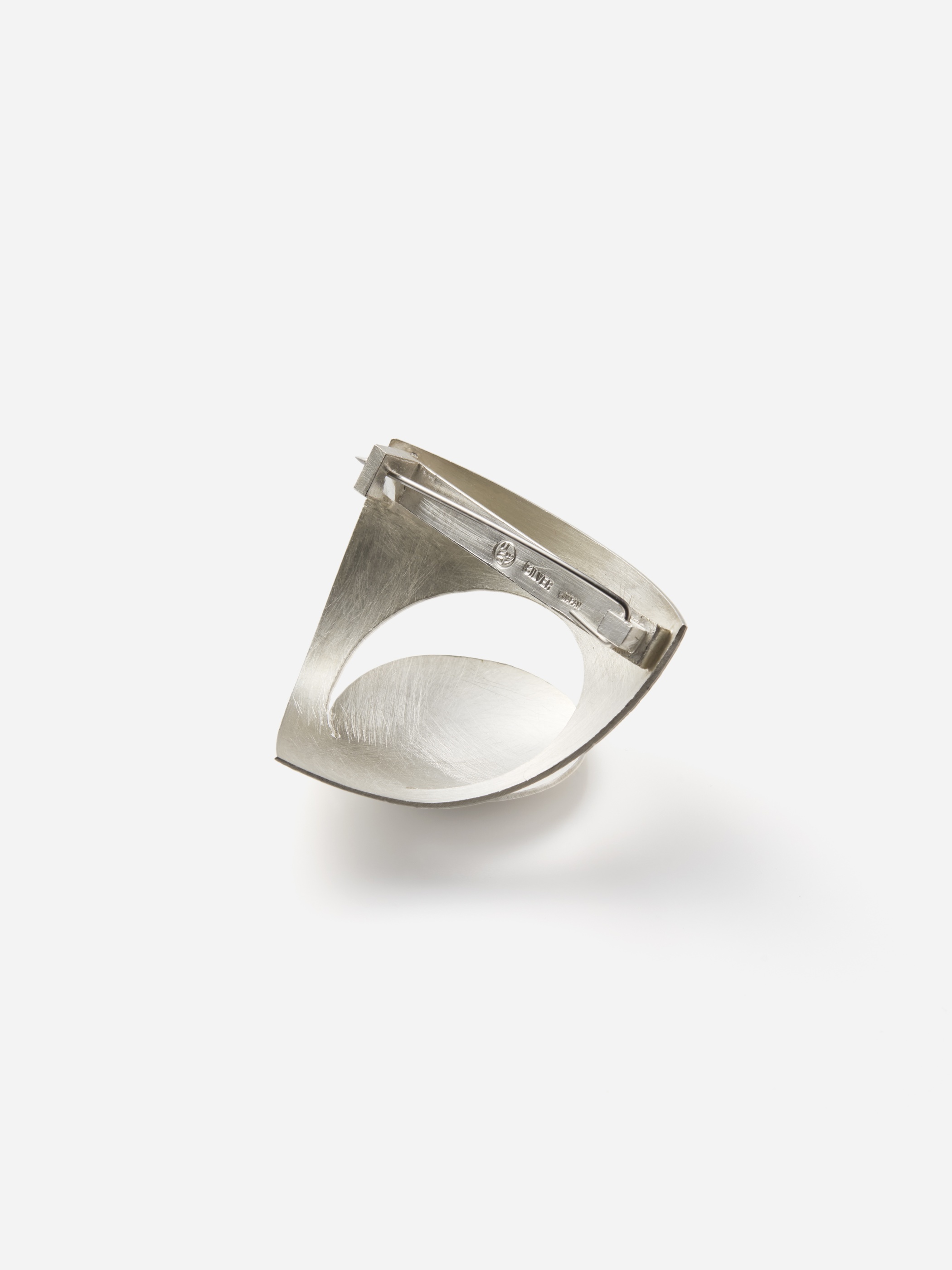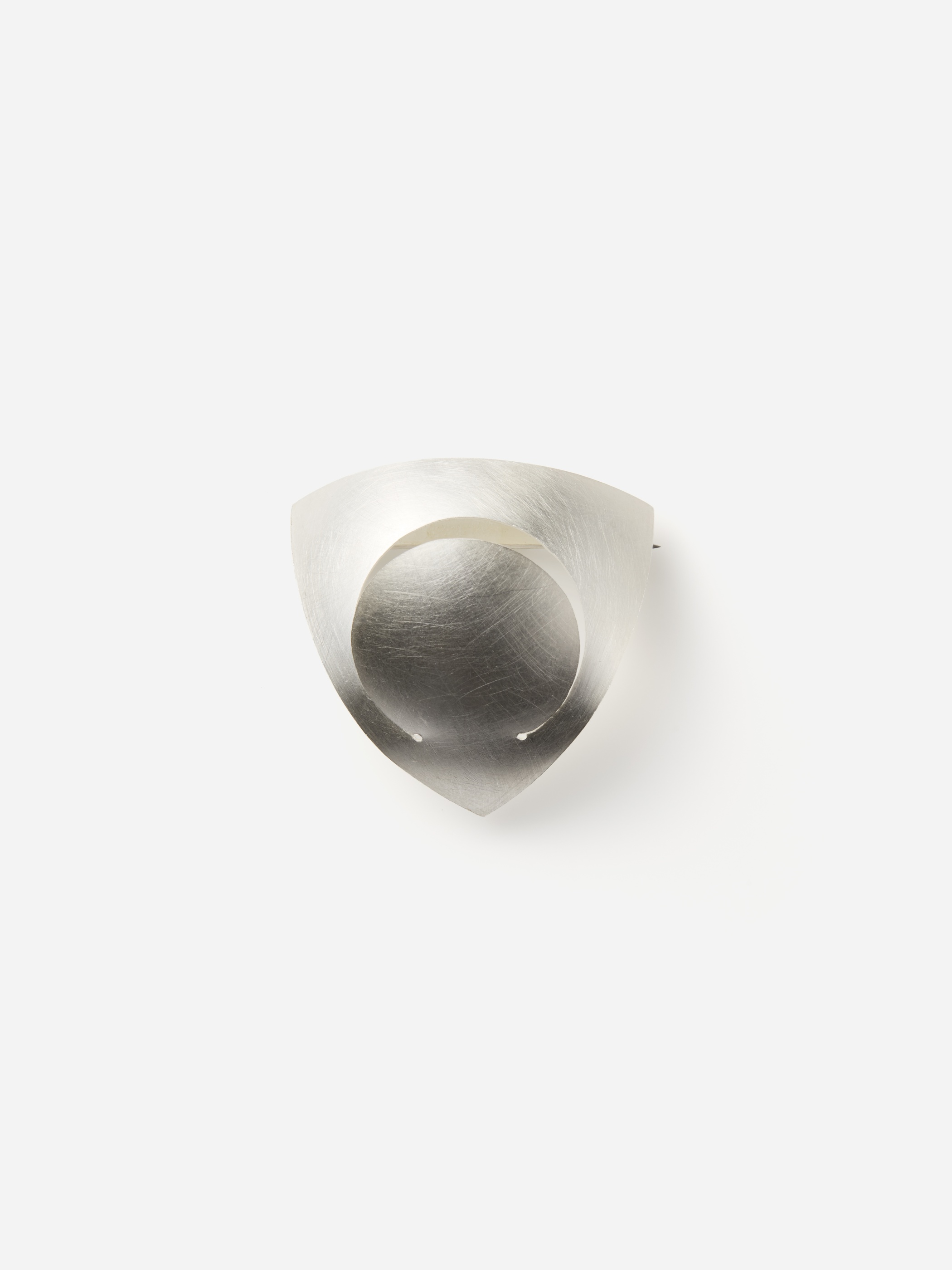 "pull up the silver plate"シリーズは、シルバーのプレートの一部を持ち上げることを起点にデザインが展開されています。三角と丸の組み合わせによるブローチ。