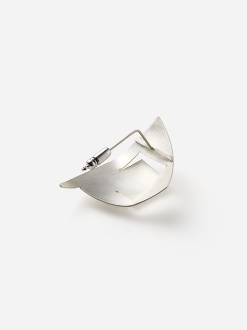 段ボールやポジフィルムをジュエリーの素材として用いる一方で、シルバーを使ったモダンなジュエリーも手掛けるRitsuko Ogura。素材によって制作手法や質感は異なりますが、そのどれにおいても平面を立体へと変換する心地よい緊張感のある形体が共通して見られます。