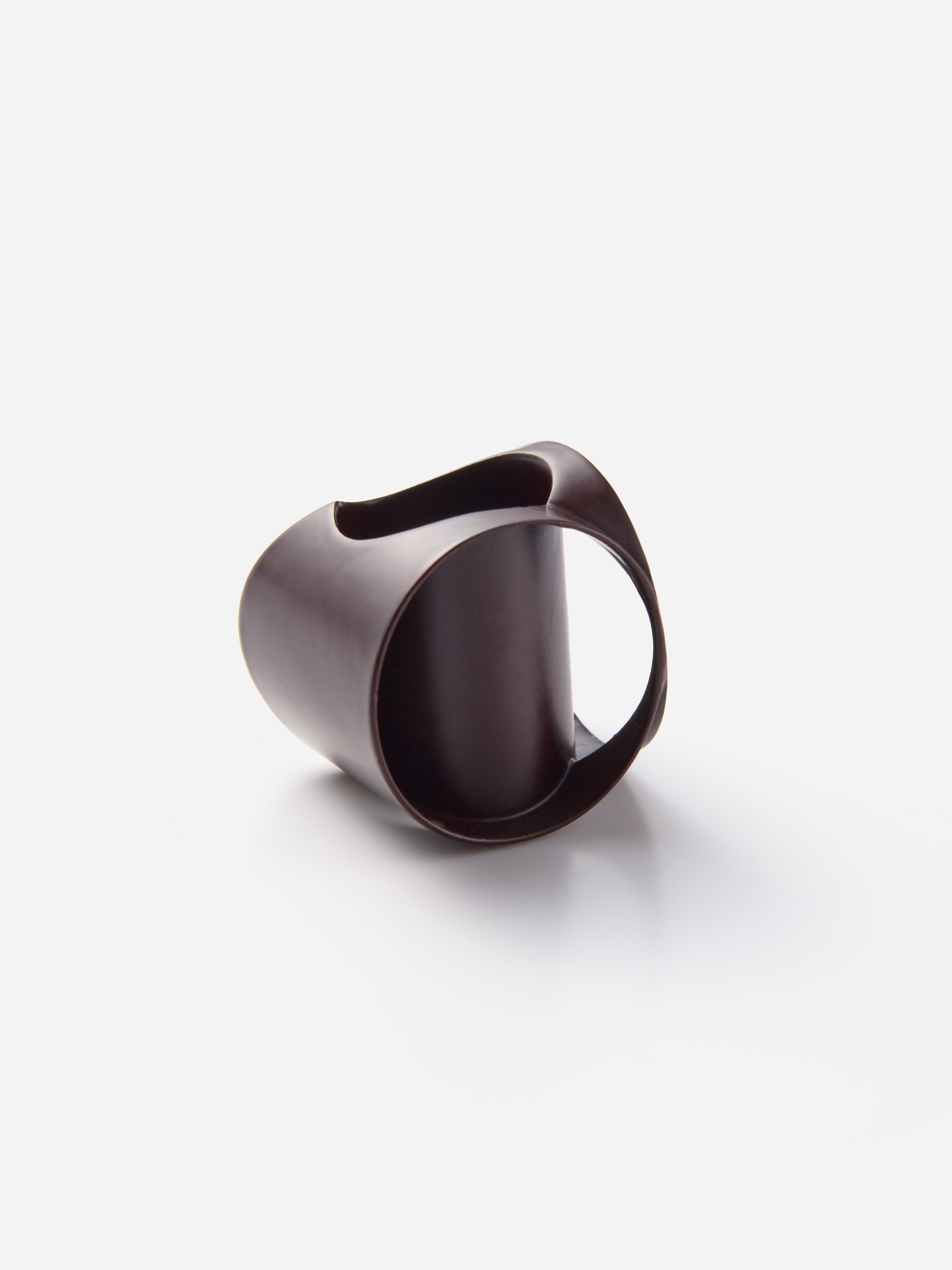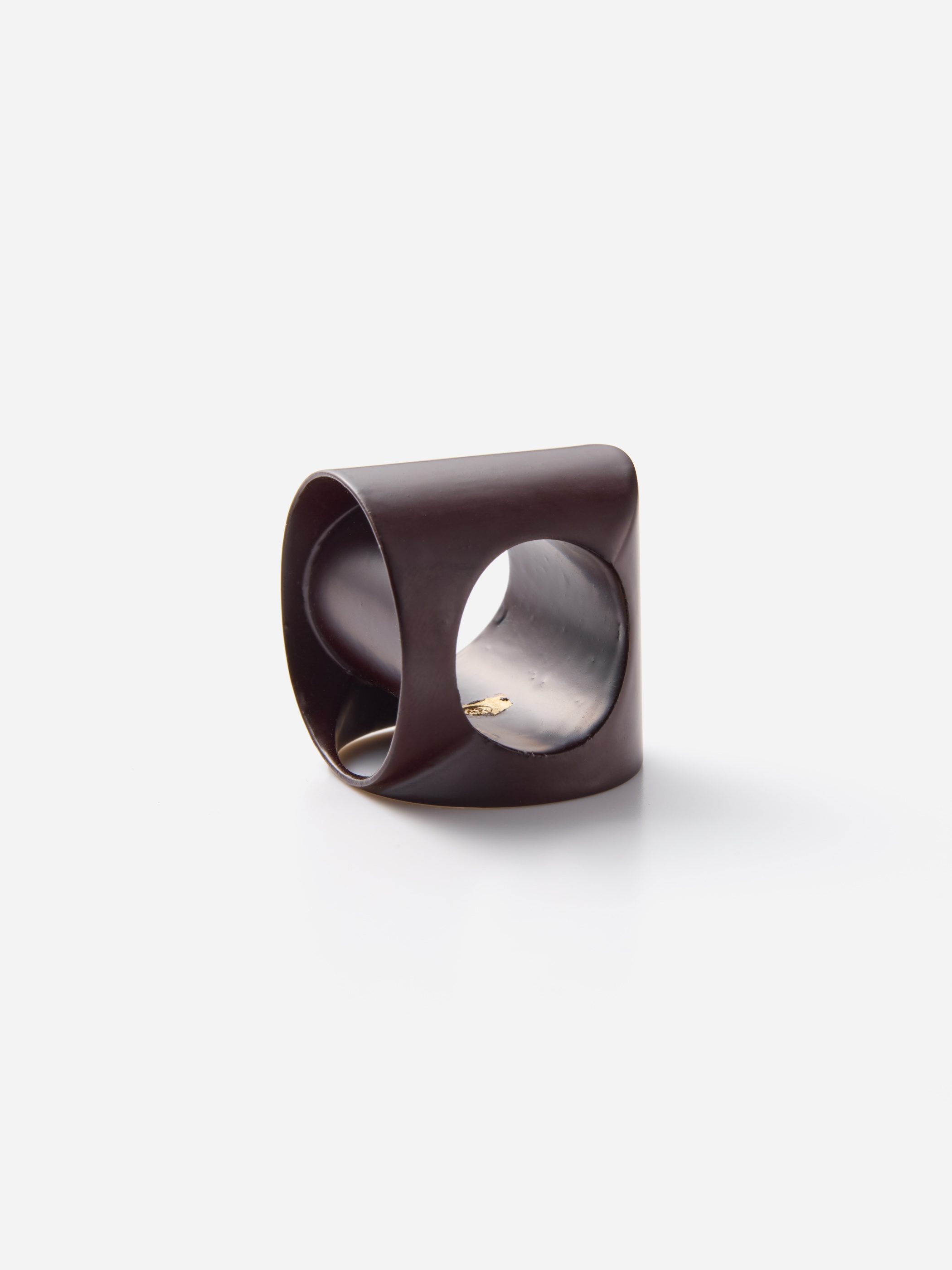管状に穴を通したような構造のシルバーリング"hole into pipe"シリーズは、指に通した時の彫刻的な美しさが印象的です。こちらはシルバーに塗られた漆ならではのマットな質感とボルドーのような深い色が特別な一点です。